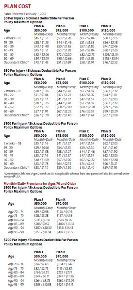 (defined above) as shown in the schedule of benefits for your plan (A, B,